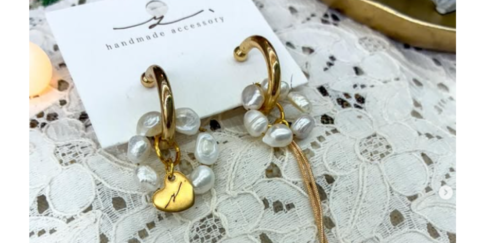 お店蝶の羽のようなガラスチャームがついています🦋丸く繋げた淡水パール【y. ワイドット インスタ投稿】