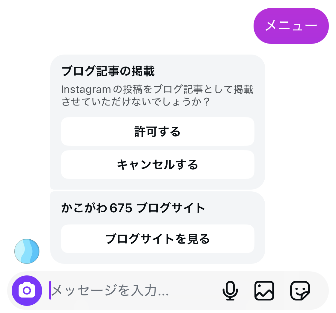 - プロフィール( @kakogawa_675 )のDMに メニュー とメッセージを送ってください。